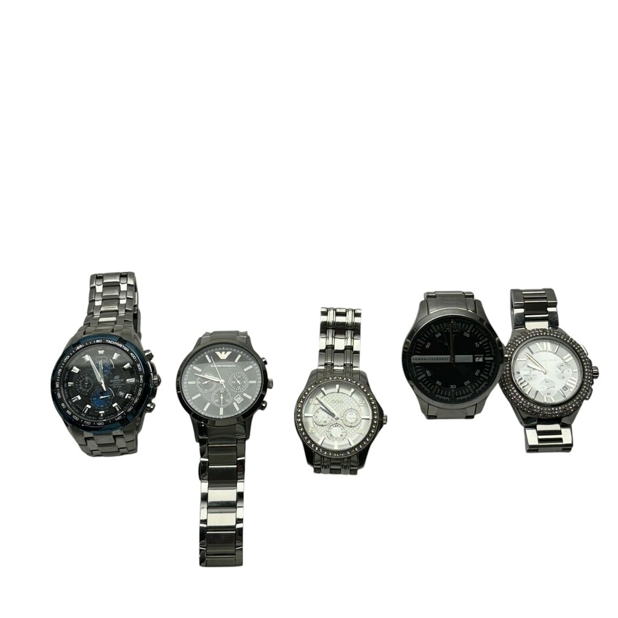 Lot van vijf dames- en herenhorloges, Casio Edifice, Michael Kors, Armani (2x) en Guess