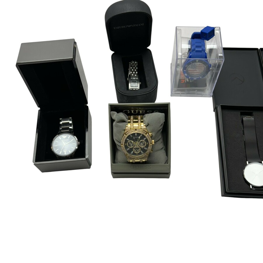 Lot horloges in doosjes. Diverse merken, 3x Kane, ICE Watch, Guess en 2x Armani