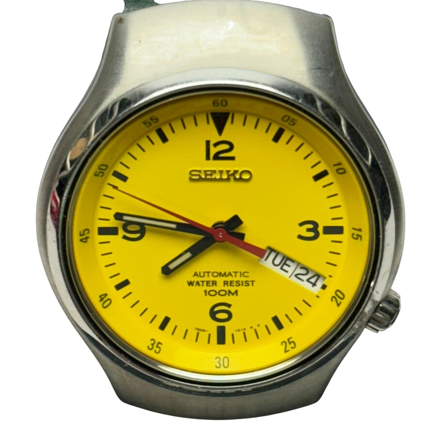 Een 20e eeuws automatischherenhorloge Seiko. Ref. 7S26-0110, op groen lederen Seiko band, in Seiko doosje.