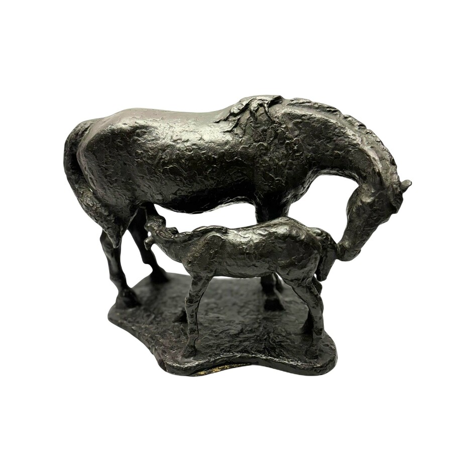 Bronzen beeld, 'Merrie en veulen', door Pieter D'Hont (Hilversum 1917 - Utrecht 1997). Oplage van 100, periode 1969/1970. Literatuur: 'Pieter d'Hont, leven en werk, p. 144'.