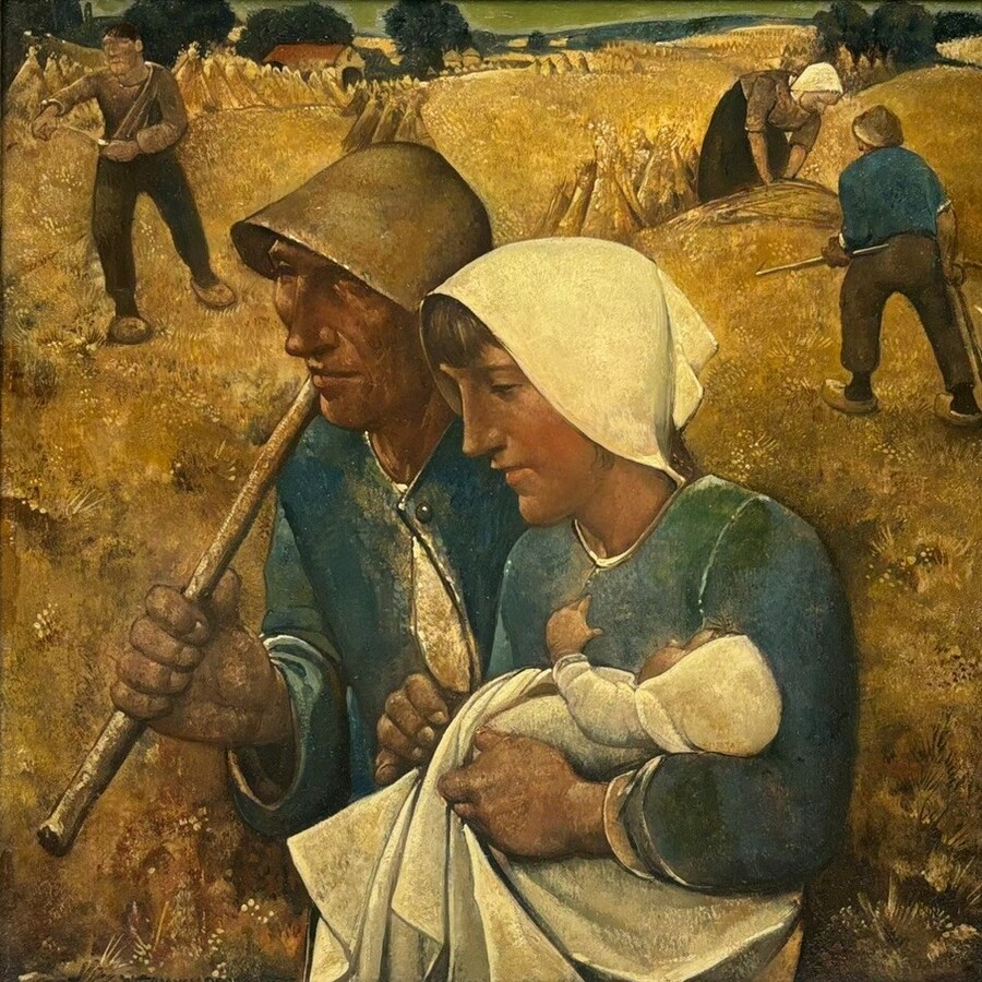 Schilderij, olieverf op paneel. Voorstelling van een boer en boerin, met op de achtergrond diverse figuren, verso titel 'Op weg naar huis'. Linksonder gesigneerd Willem van den Berg (Den Haag 18...