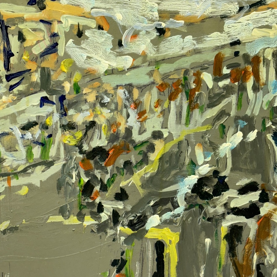 Schilderij, olieverf op board. 'Verboden stad', op de achterzijde gesigneerd Koos Dalstra (Leeuwarden, 1950), gedateerd 2005.