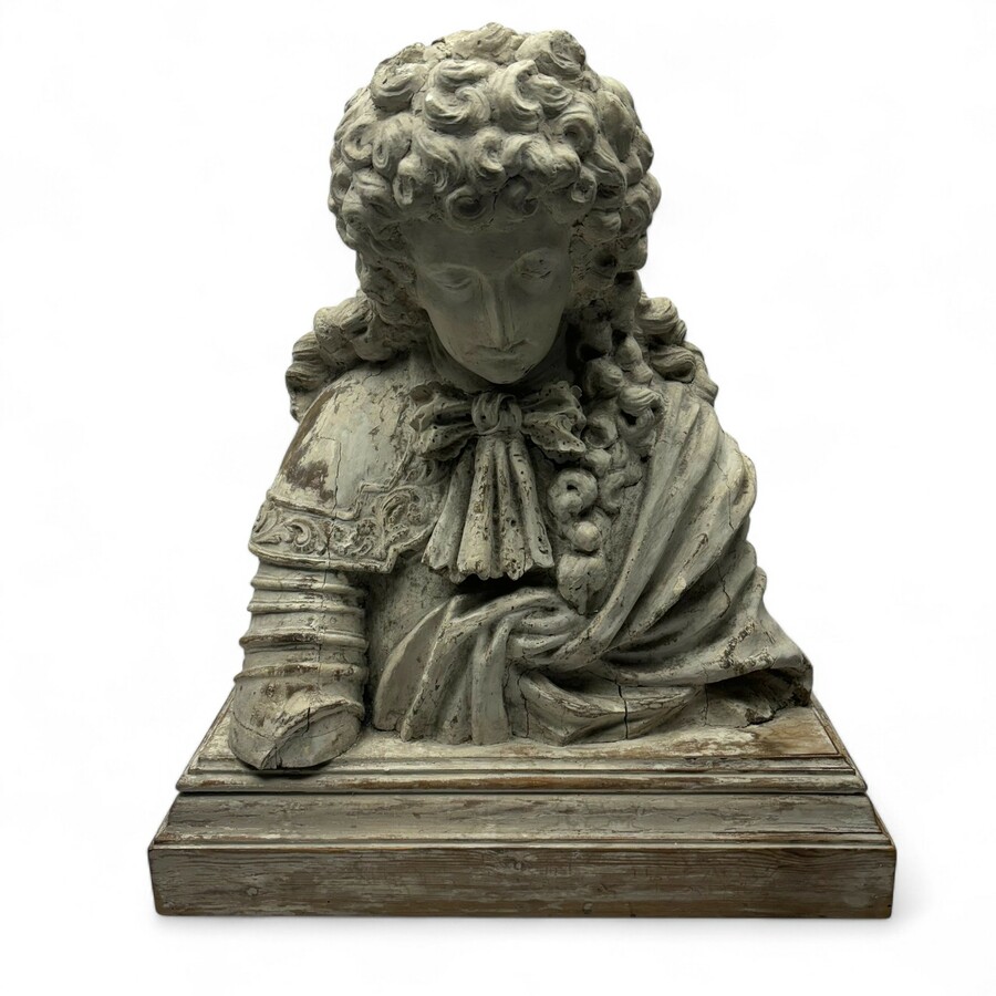 Een antiek vroeg 18e eeuwse Franse uit hout gestoken buste, mogelijk Lodewijk XIV, op 19e eeuwse sokkel. Zie aflevering Tussen kunst & kitsch in Fries Museum Leeuwarden, februari 2011, vanaf...