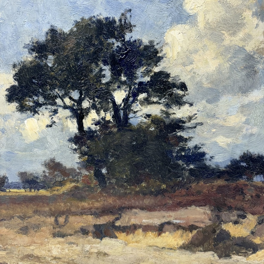 Olieverf op doek, heidelandschap bij Elp, Drenthe. Linksonder gesigneerd Albert Roessingh.