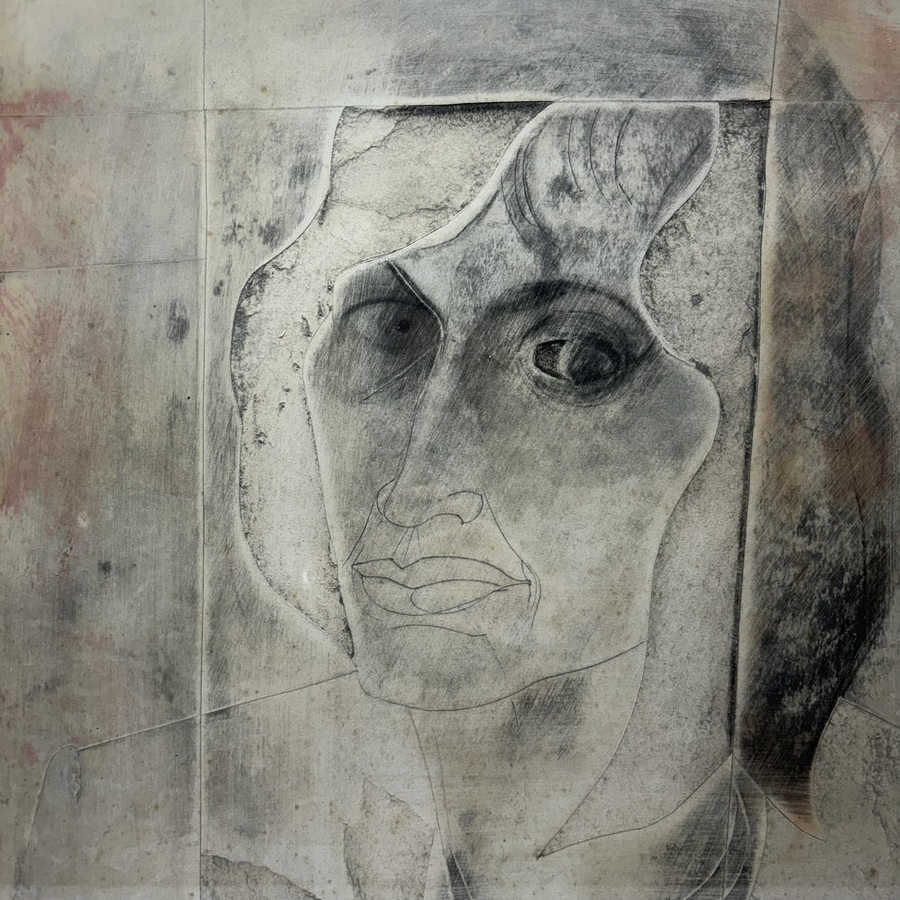 Gemengde techniek op papier, portret. Rechtsonder gesigneerd Sjoerd de Vries (Oudehaske 1941 - Leeuwarden 2020), gedateerd 1995.