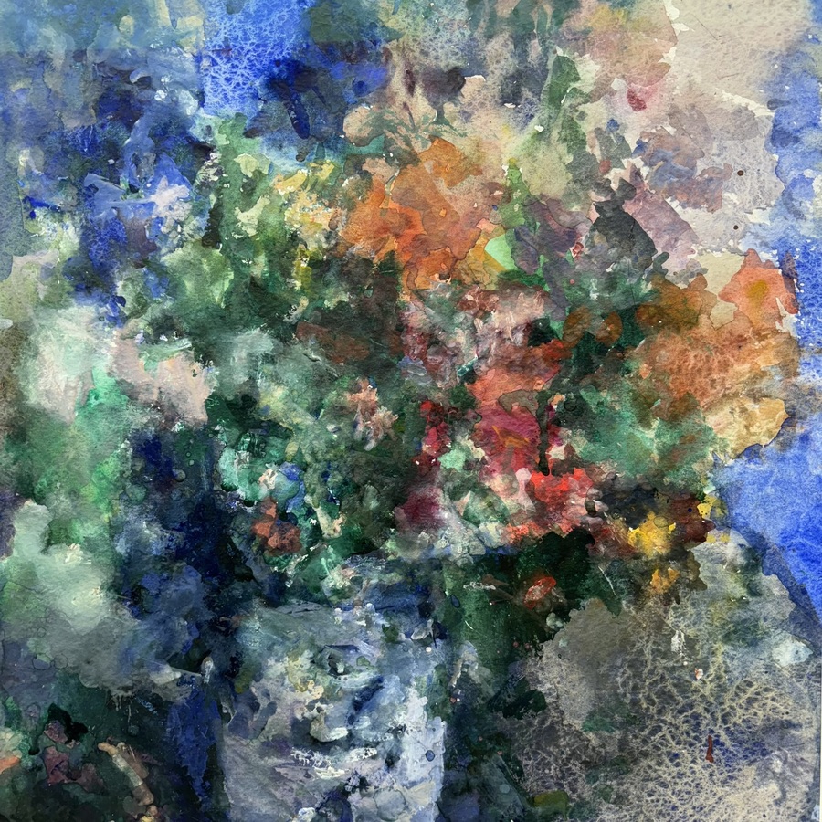 Aquarel op papier, kleurrijk bloemstilleven in een vaas. Gesigneerd Kees Verwey (Amsterdam 1900 - Haarlem 1995), gedateerd 1984. Herkomst: kunsthandel Peter Pappot, Amsterdam 2007. Literatuur: '...