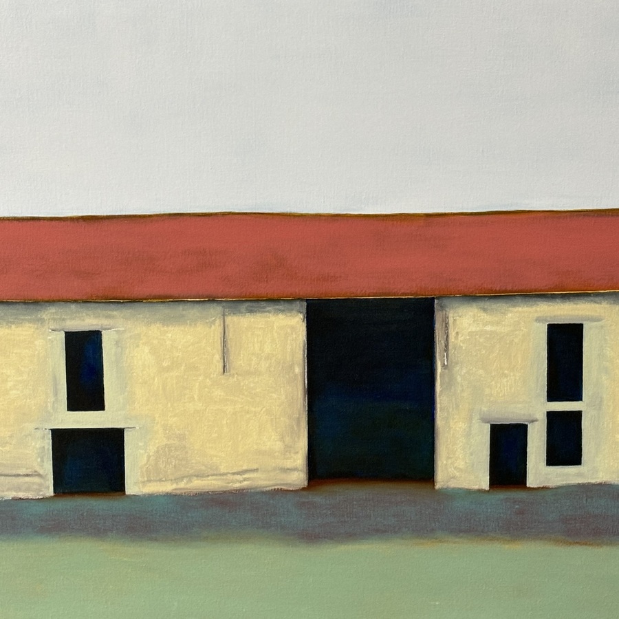 Schilderij, olieverf op doek. Voorstelling van een schuur. Op de achterzijde gesigneerd Euf Lindeboom (Nijmegen, 1947), gedateerd 2003.