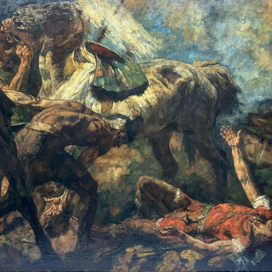 Schilderij, olieverf op doek. 'De bekering van Saulus'. Rechtsonder gesigneerd Johannes Hendricus Jurres (Leeuwarden 1875-Amsterdam 1946)