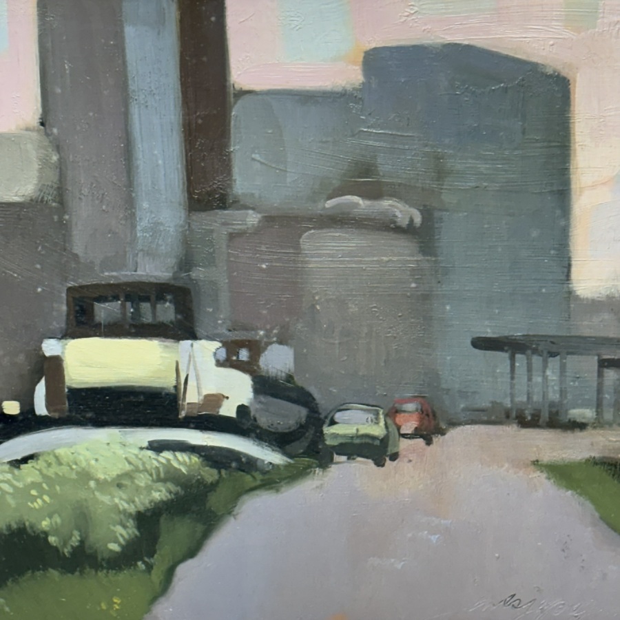 Schilderij, olieverf op paneel. Industriekanaal Leeuwarden, met de Condensfabriek op de achtergrond. Rechtsonder gesigneerd Jentsje Popma (Zwolle 1921 - Leeuwarden 2022), gedateerd februari 1978...