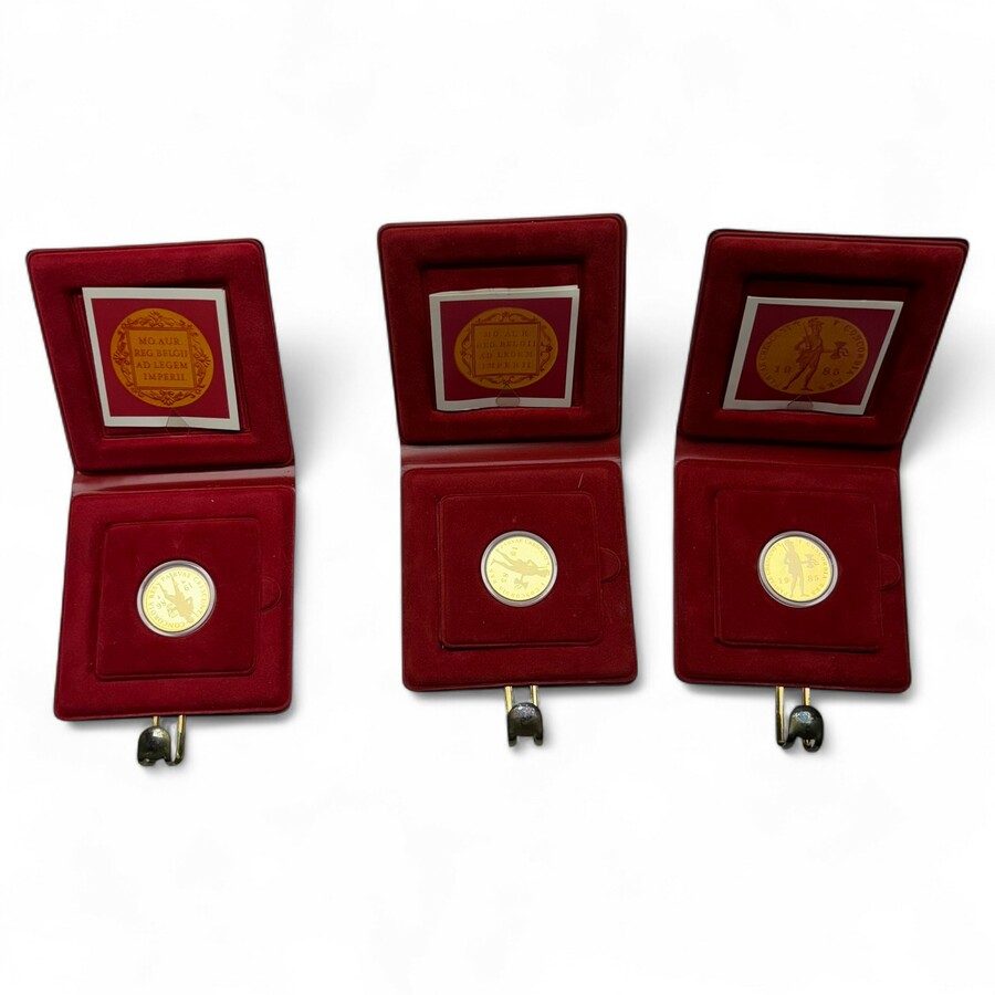 Lot van drie 20e eeuwse munten, Gouden Dukaten, uitgave Dutch Mint 1985 en 1986.