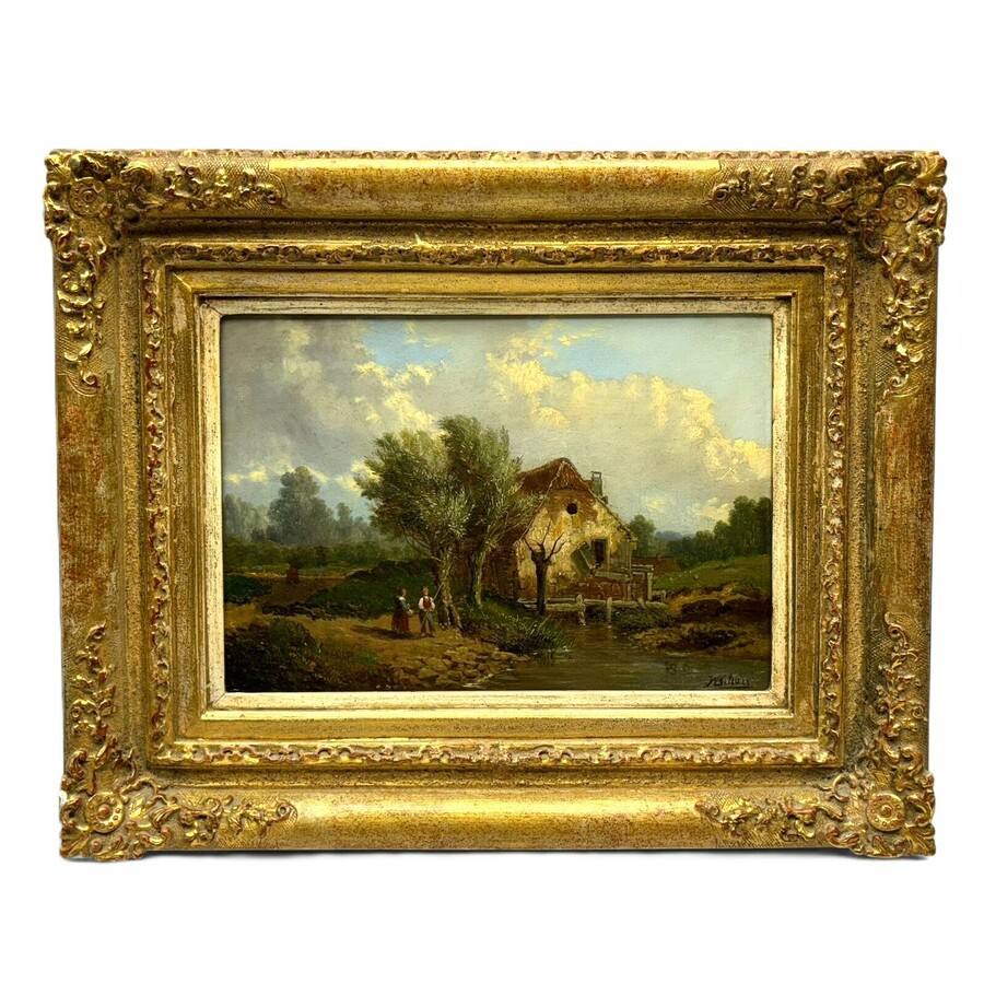 Schilderij, olieverf op paneel. Zomerlandschap met vissers, rechtsonder gesigneerd Johannes Warnardus Bilders (Utrecht 1811 - Oosterbeek 1890). Herkomst: kunsthandel Peter Pappot Amsterdam, 2002...