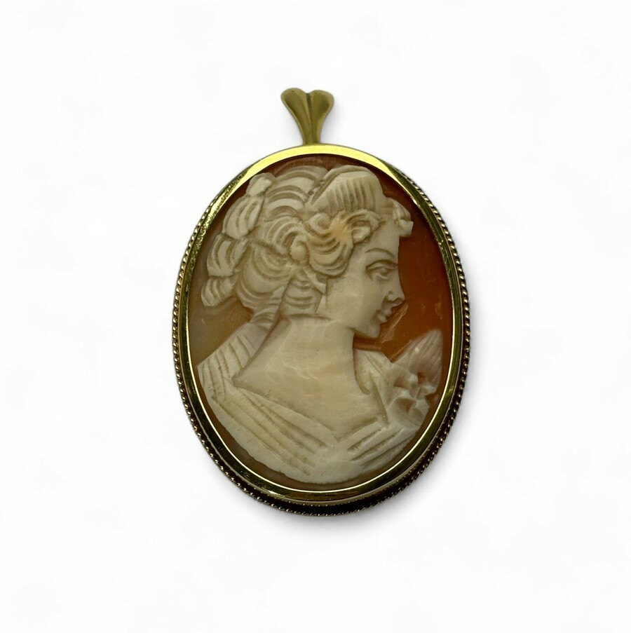 Een 20e eeuwse camee broche in gouden montuur