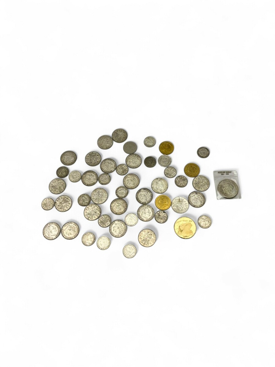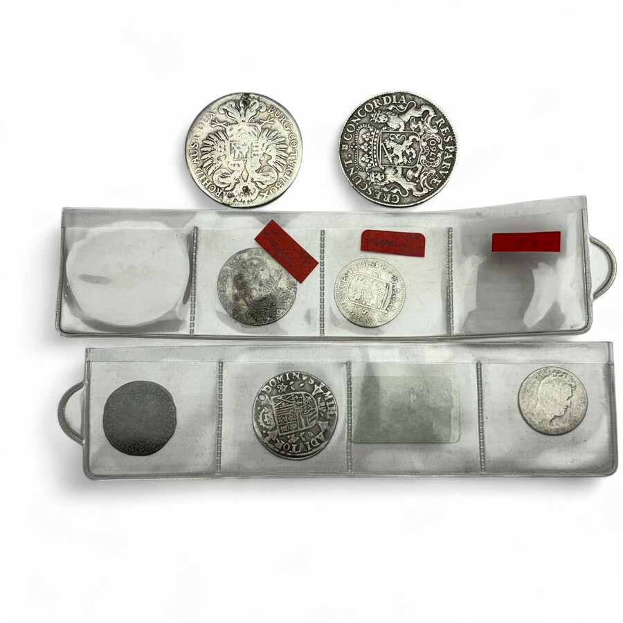 Lot zeldzame Nederlandse (en één internationale) munten, o.a. een Philipsdaalder Brabant 1566, 1,5 Stuiver (Butken), 1560, 6 Stuiver West-Friesland 1678 etc. etc.