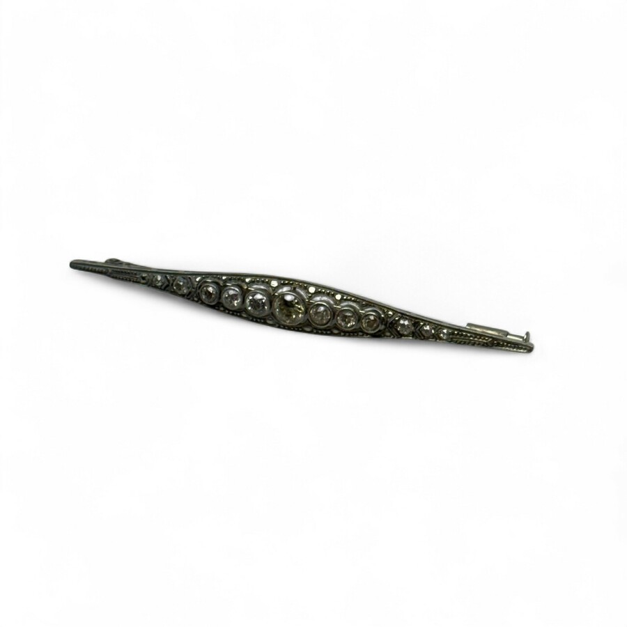 Een antieke 19e eeuwse 14 karaats (585/1000) witgouden broche bezet met twaalf diamantjes