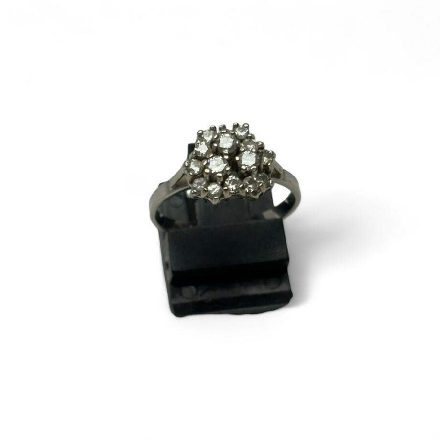 Een 20e eeuwse 14 karaats (585/1000) witgouden fantasiering bezet met 15 briljant geslepen diamantjes