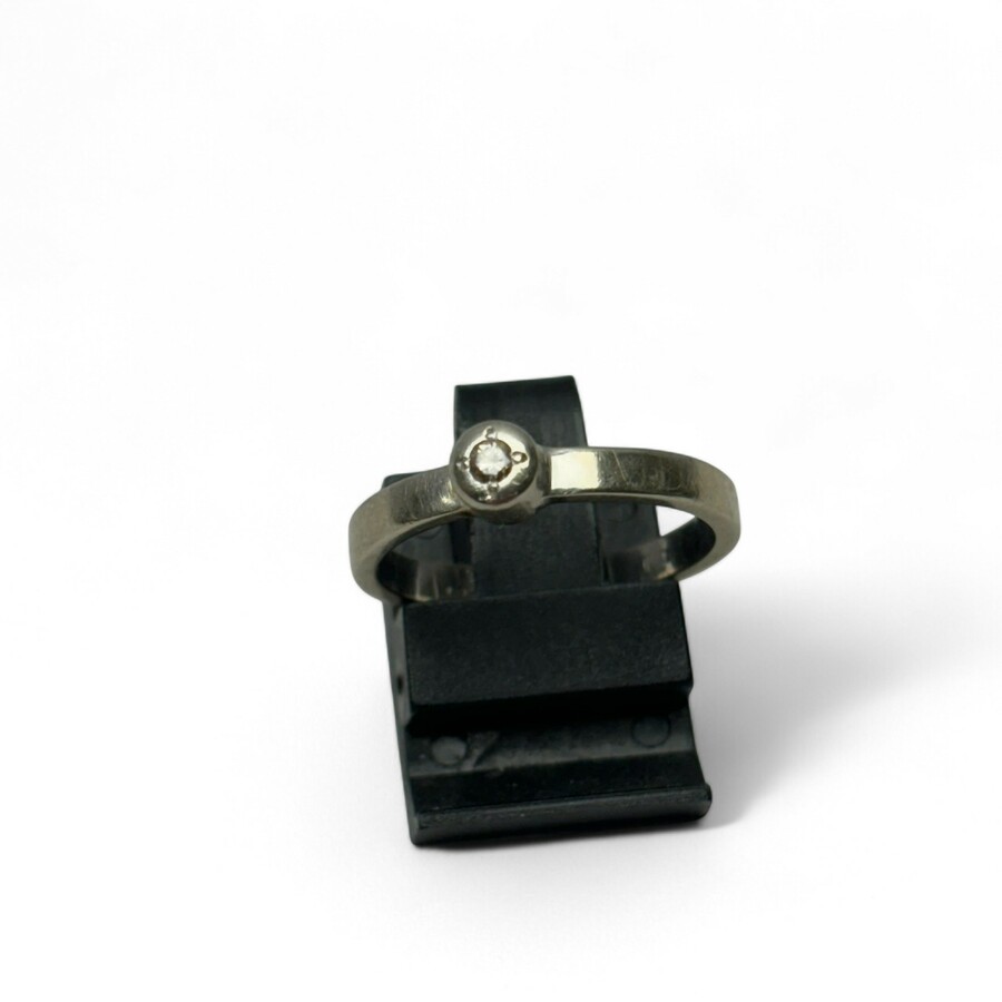 Een 20e eeuwse 14 karaats (585/1000) witgouden rijring bezet met ca. 0,2 karaat aan briljant geslepen diamant