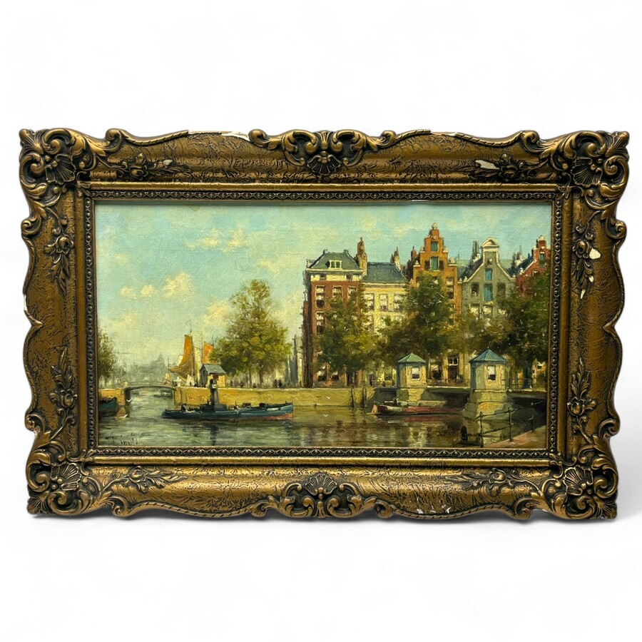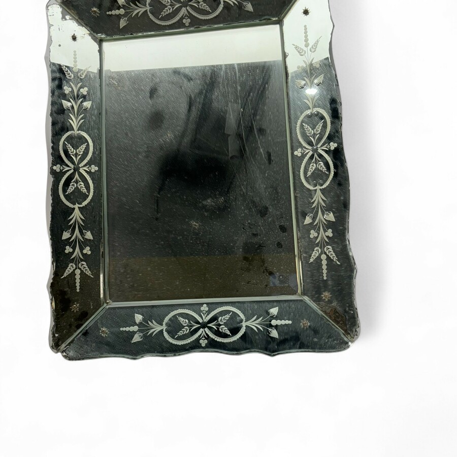 Een antieke Venitiaanse spiegel met gegraveerde gecontourneerde rand