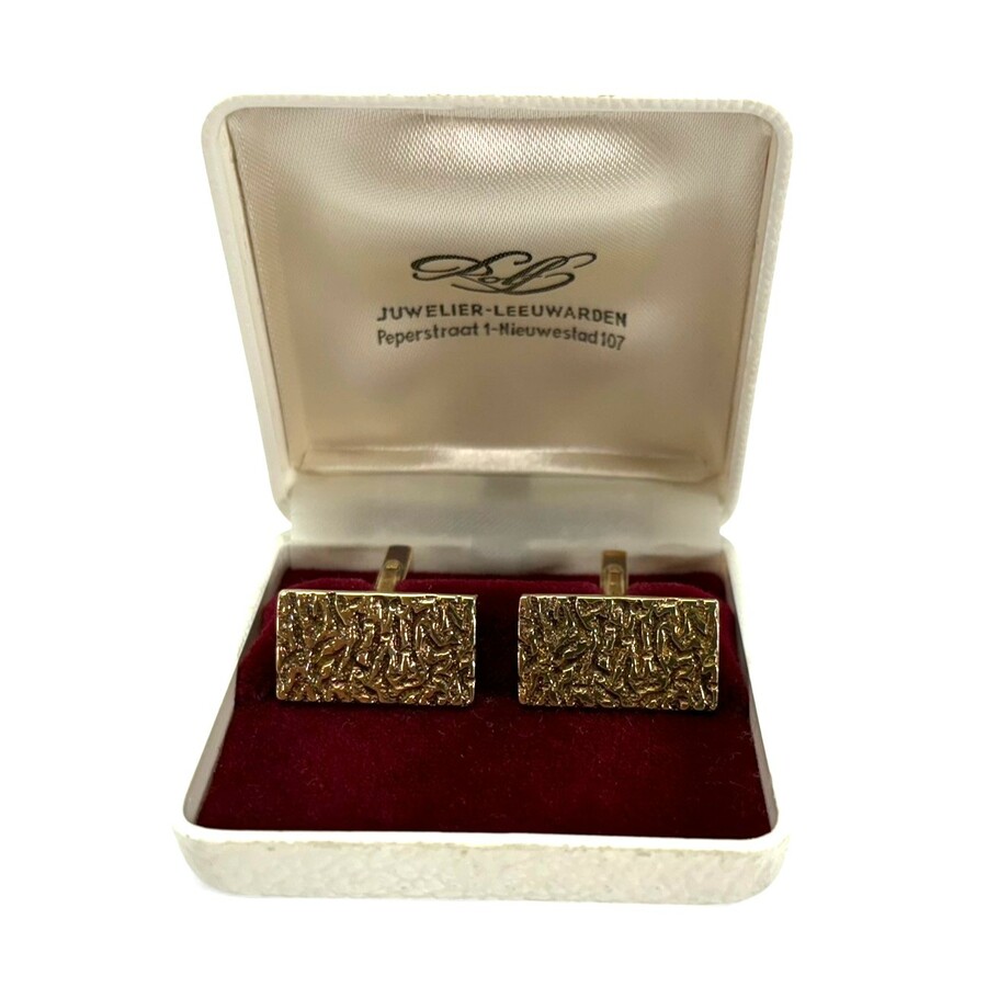 Een stel 20e eeuwse 14 karaats (585/1000) geelgouden manchetknopen, brutalistische stijl, ca. 1960.