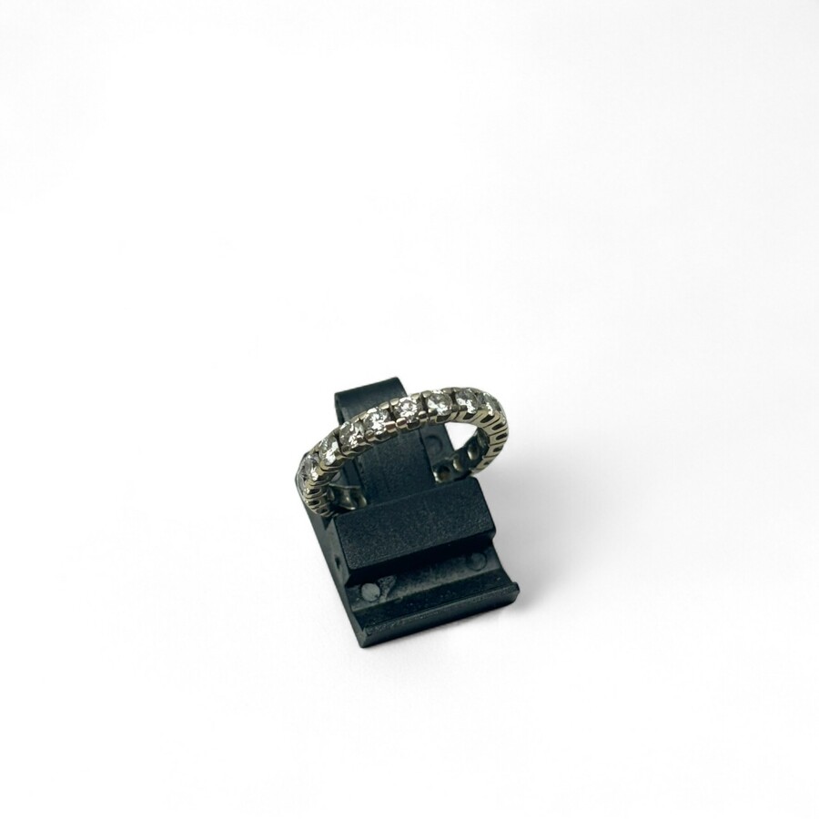 Een 20e eeuwse 14 karaats (585/1000) witgouden rijring bezet met briljant geslepen diamant