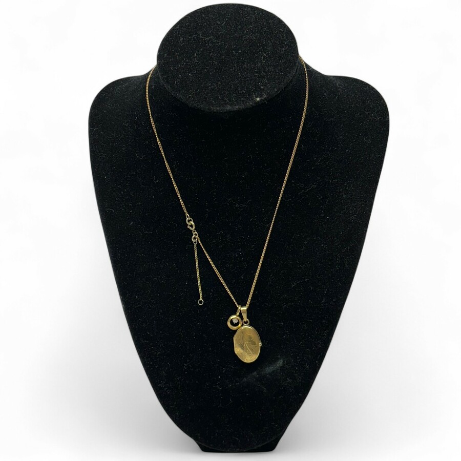 Een 20e euws 14 karaats (585/1000) geelgouden collier, met daaraan een 14 karaats geelgouden medaillon en 14 karaats hanger bezet met kleine briljant