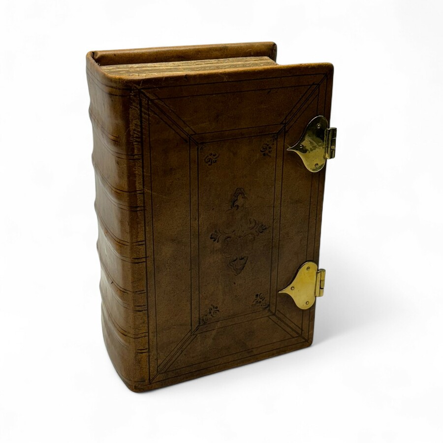 Een antieke 19e eeuwse Bijbel in lederen kaft, met bronzen sloten. ‘Bijbel met Houtsneeplaten – Gorinchem en Zalt-Bommel, J. Noorduijn en Zoon en Joh. Noman en Zoon 1847’.