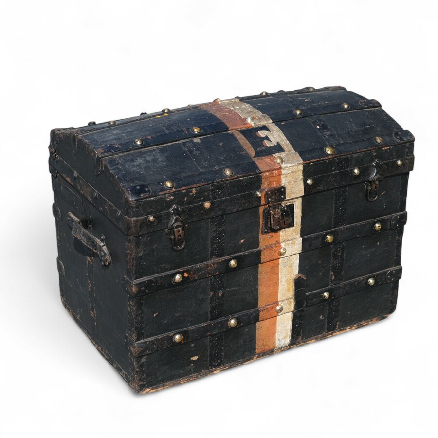 Een antieke laat 19e eeuwse hutkoffer, vermoedelijk Frans