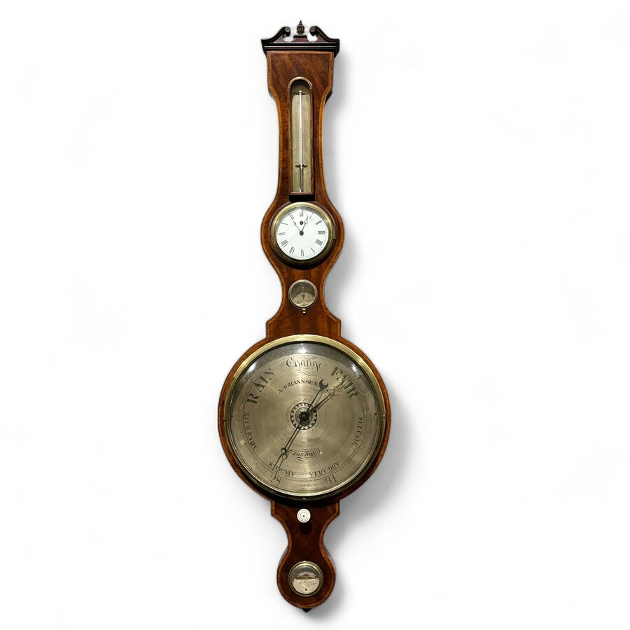 Engelse banjobarometer met klok, 19e eeuw
