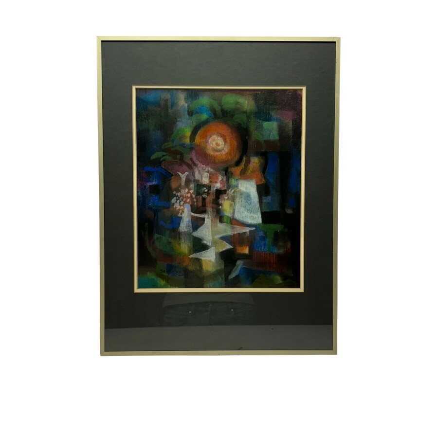Krijttekening op papier, abstracte compositie. Linksonder gesigneerd Bouke van der Sloot (1908-1995), verso gedateerd 1995.