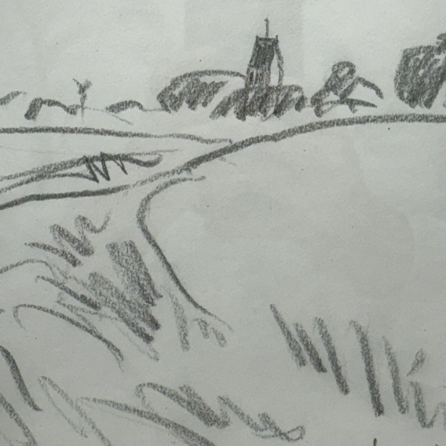 Potloodtekening op papier '... bij Stiens'. Rechtsonder gesigneerd Dirk Beintema (Leeuwarden, 1948).