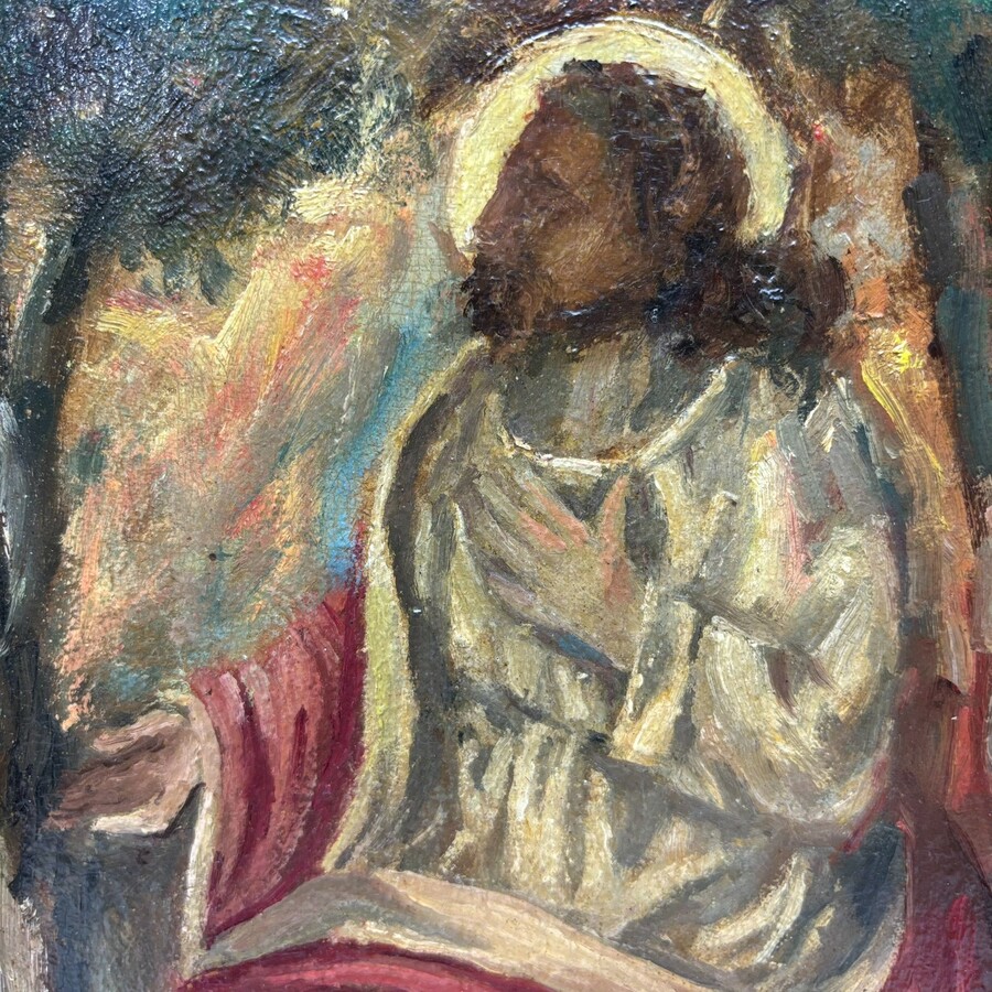 Schilderij, olieverf op paneel. Portret van een Heilige, rechtsonder gesigneerd J.C. Roelandse (Leiden 1888 - Leiderdorp 1978).