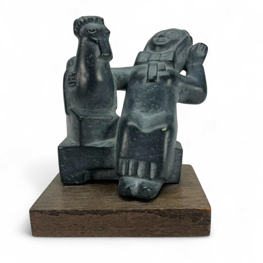 Een sculptuur op houten basement, 15 cm hoog. Zoete lieve Gerritje. Model naar een beeldhouwwerk van Leo Geurtjens (1924-2020). Origineel te Den Bosch