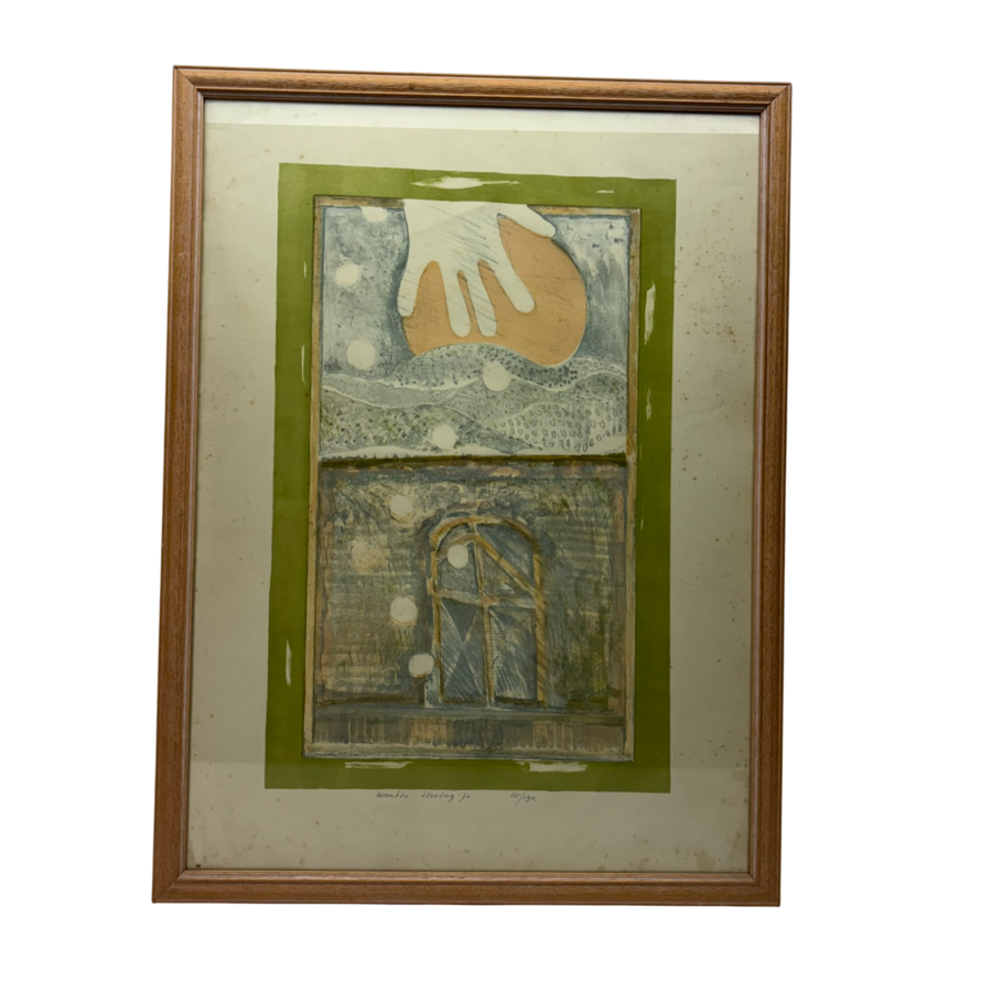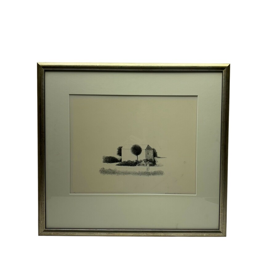 Litho op papier, boom bij huisje. Rechtsonder gesigneerd Metten Koornstra (Rotterdam 1912 - Amsterdam 1978), gedateerd 1972.