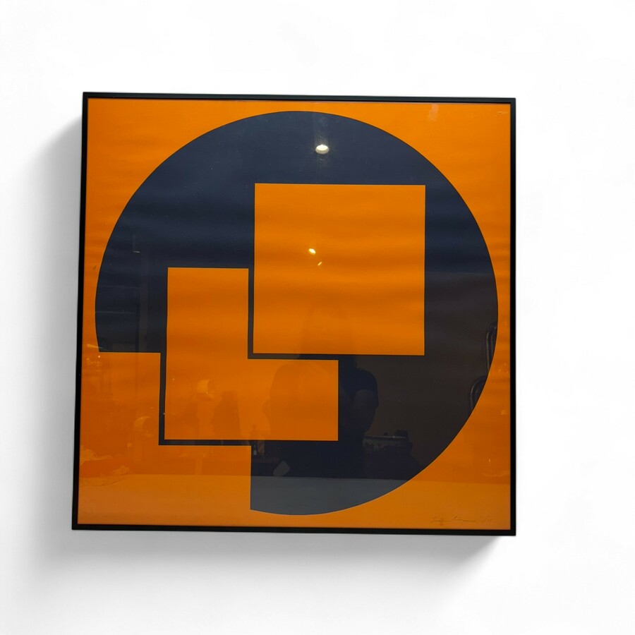 Zeefdruk op papier, geometrische compositie in blauw-oranje. Rechtsonder gesigneerd Cyril Lixenberg (London 1932 - Amsterdam 2015), oplage 13/75.