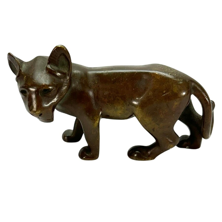 Een 20e eeuws gepatineerd bronzen sculptuur, lynx. Ongesigneerd.