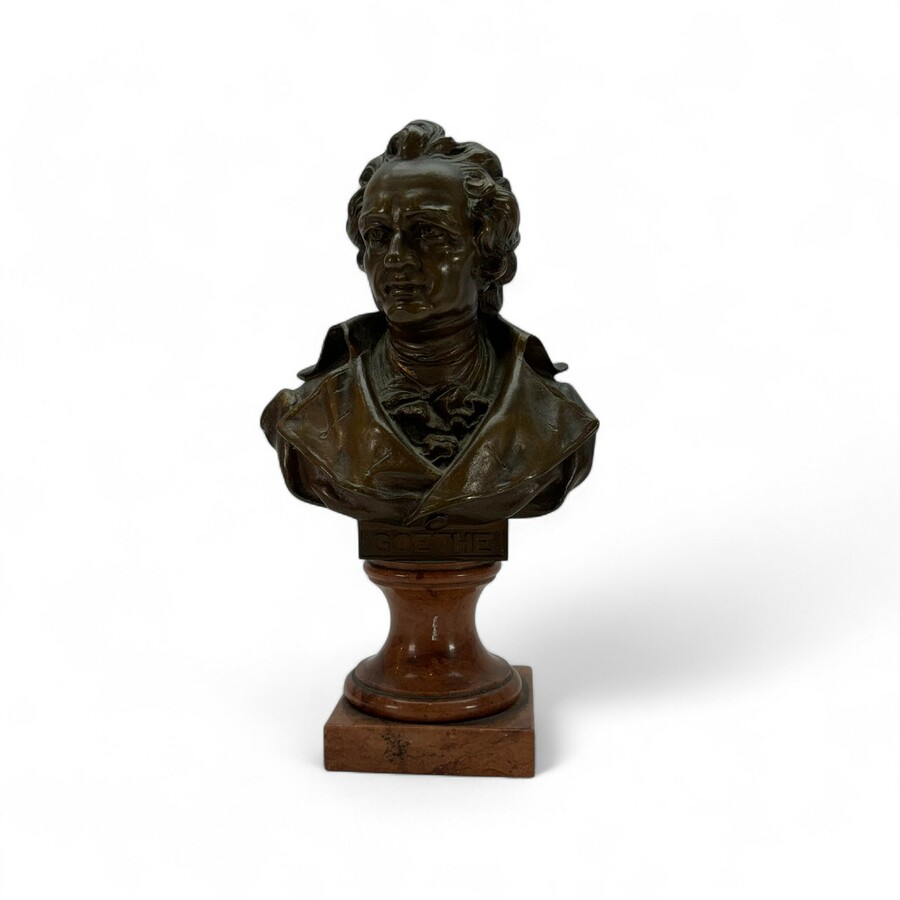 Een 19e of 20e eeuwse bronzen buste van Goethe, op marmeren sokkel.