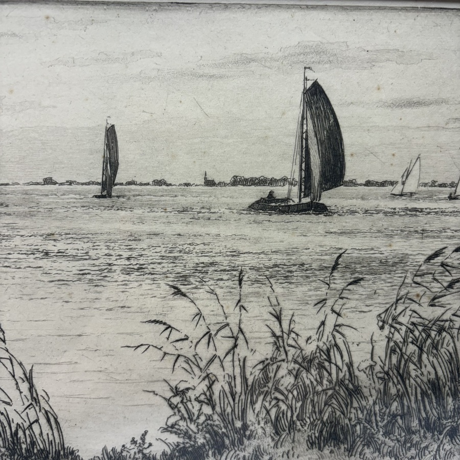 Ets op papier, 'Snekermeer 1947'. Rechtsonder gesigneerd Johan Hemkes (Schalsum 1894 - Bilthoven 1988).