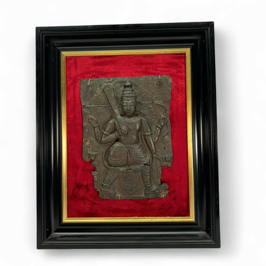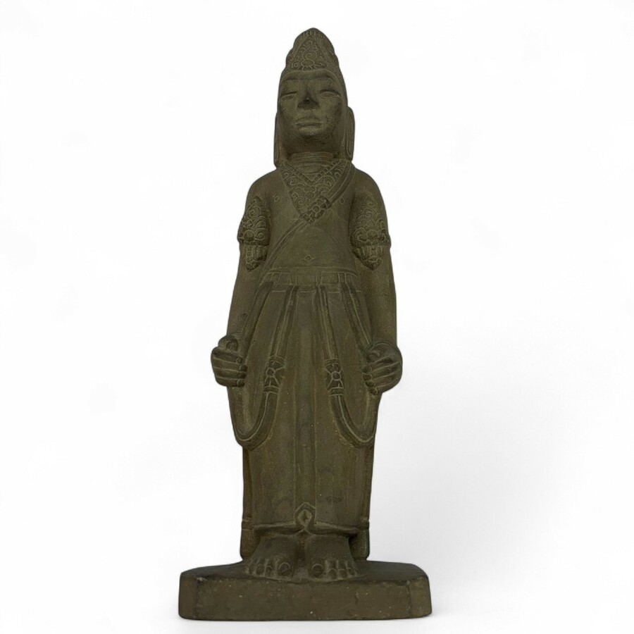 Een uit zandsteen gebeeldhouden Hindoestaanse sculptuur, 36 cm hoog. Voorstellende Lord Vishnu.