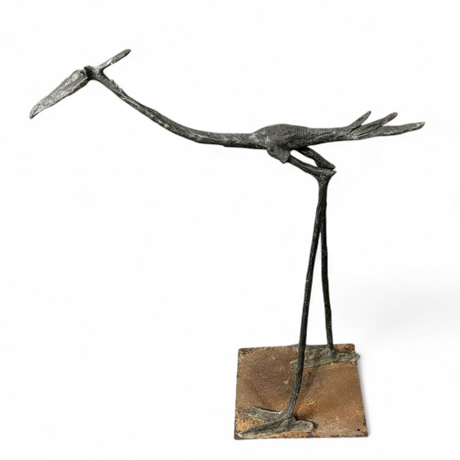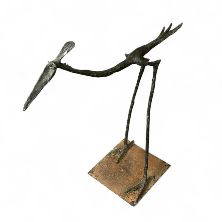Een groot 20e eeuws bronzen sculptuur, staande vogel.