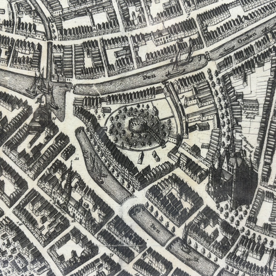 Een 17e eeuwse kaart, gravure op papier. Van de Stad Leyden (Leiden) uit 1698. Gesigneerd in de druk Frederik de Wit (1630-1706), Gelijst.