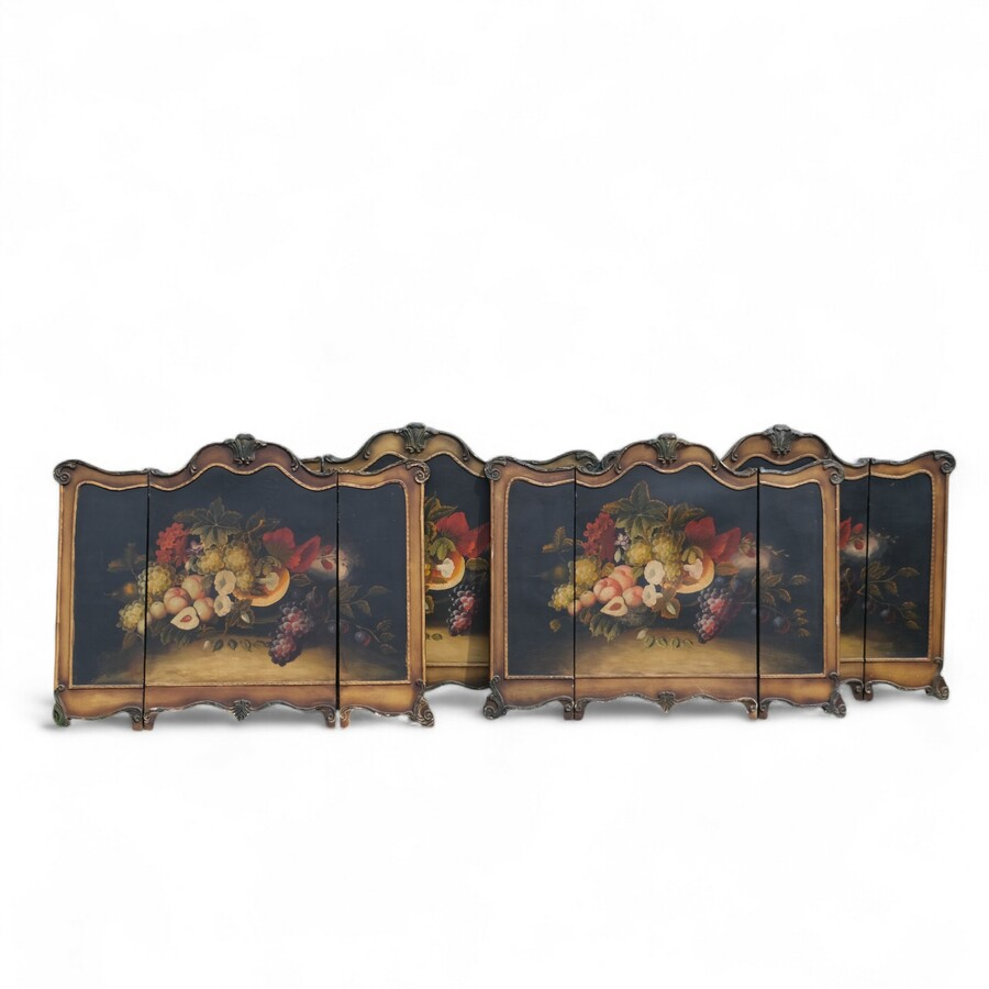 Lot van vier 20e eeuwse haardschermen, beschilderd met bloemen en vruchten. Barok stijl.