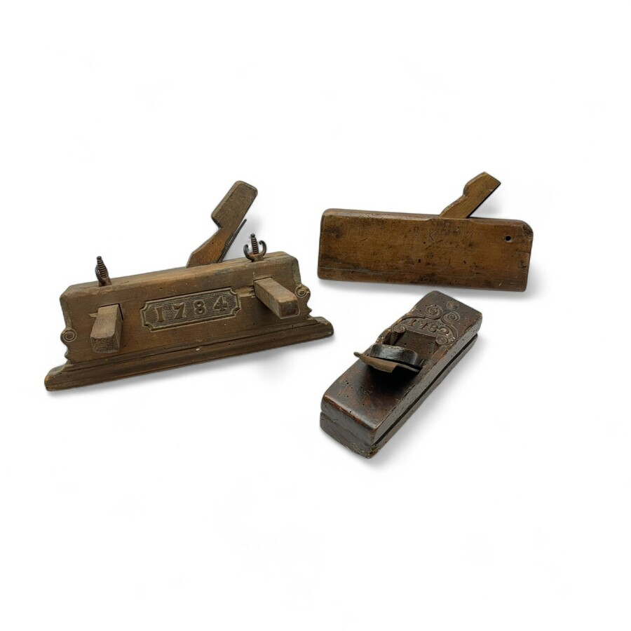 Lot van drie 18e eeuwse gedateerde schaven, 1782, 1784 en 1796