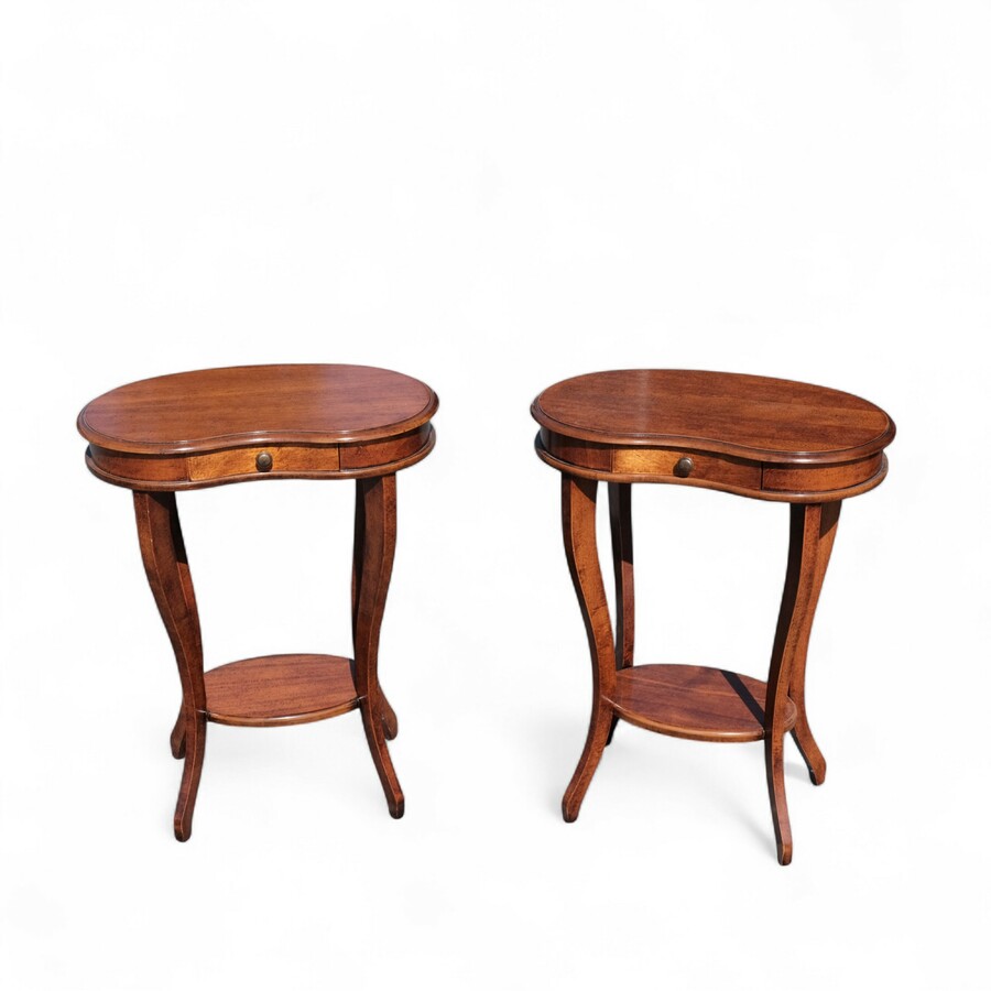 Lot van twee 20e eeuwse niervormige tafeltjes, met lade