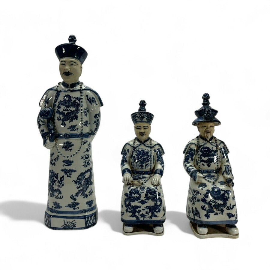 Lot van drie 20e eeuwse blauw-witte Chinese sculpturen