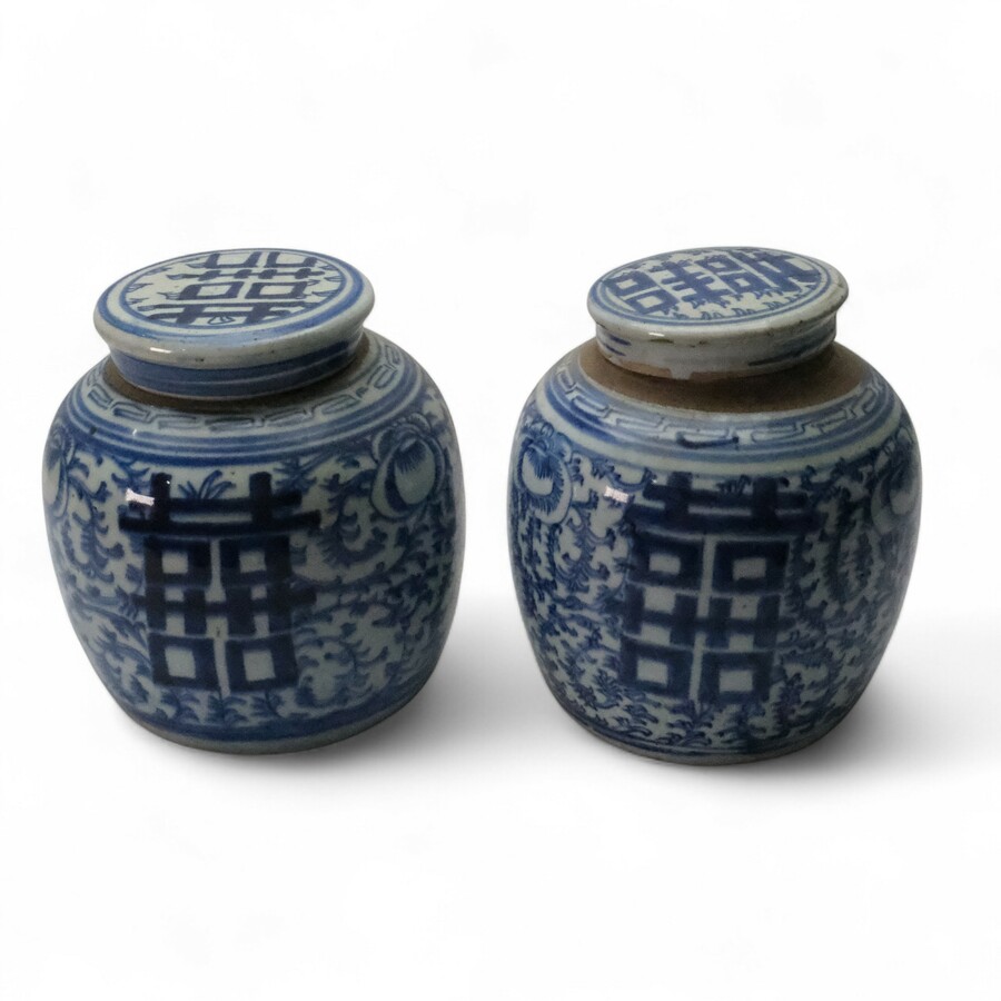 Lot van twee antieke 19e eeuwse Chinees porseleinen gemberpotten, gemerkt met 'Longevity' teken.