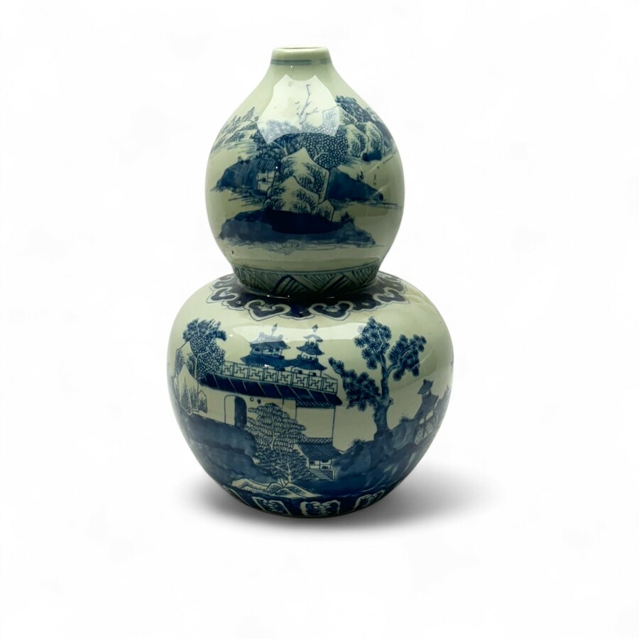 Chinees porseleinen kalabas vaas met landschapsdecor