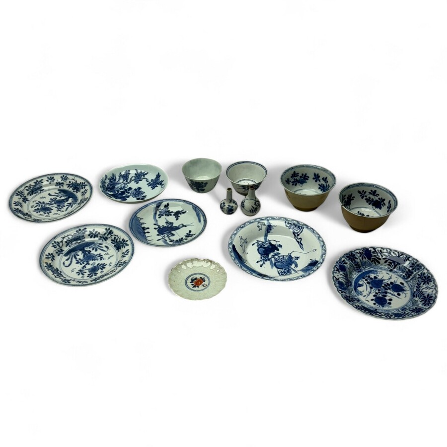 Lot divers (grotendeels) 18e eeuws Chinees porselein, waaronder twee café au lait kop en schotels en twee miniatuurvaasjes