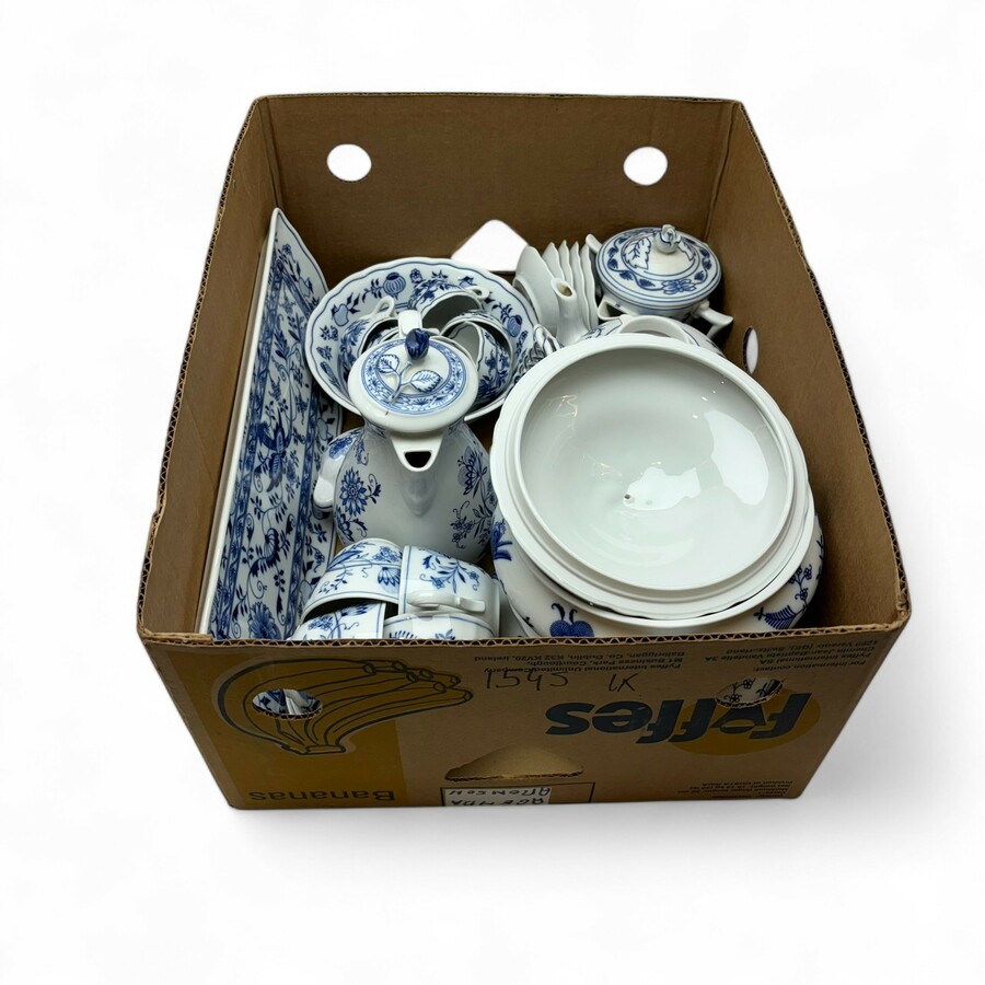 Lot divers 20e eeuws Zwiebelmuster porselein. Diverse fabrikanten, o.a. Tischenreuth, Dubi en Oscar Schaller
