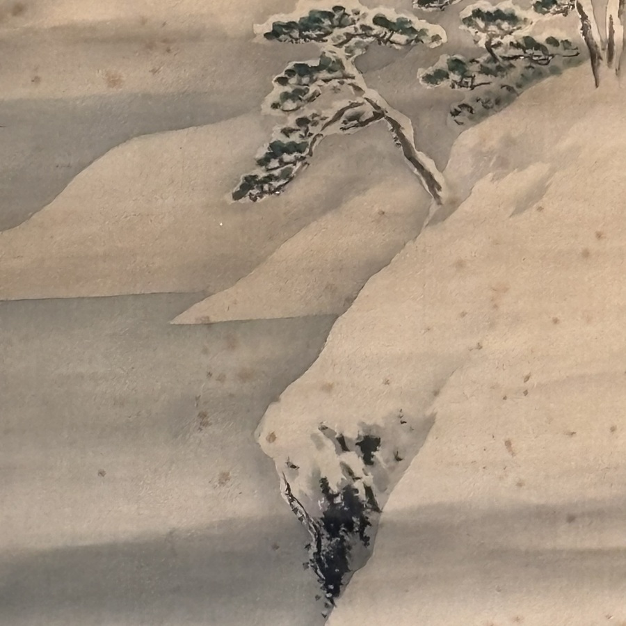 Chinese scroll met voorstelling van een besneeuwd berglandschap, gouache op zijde, linksonder gesigneerd, 19e eeuw