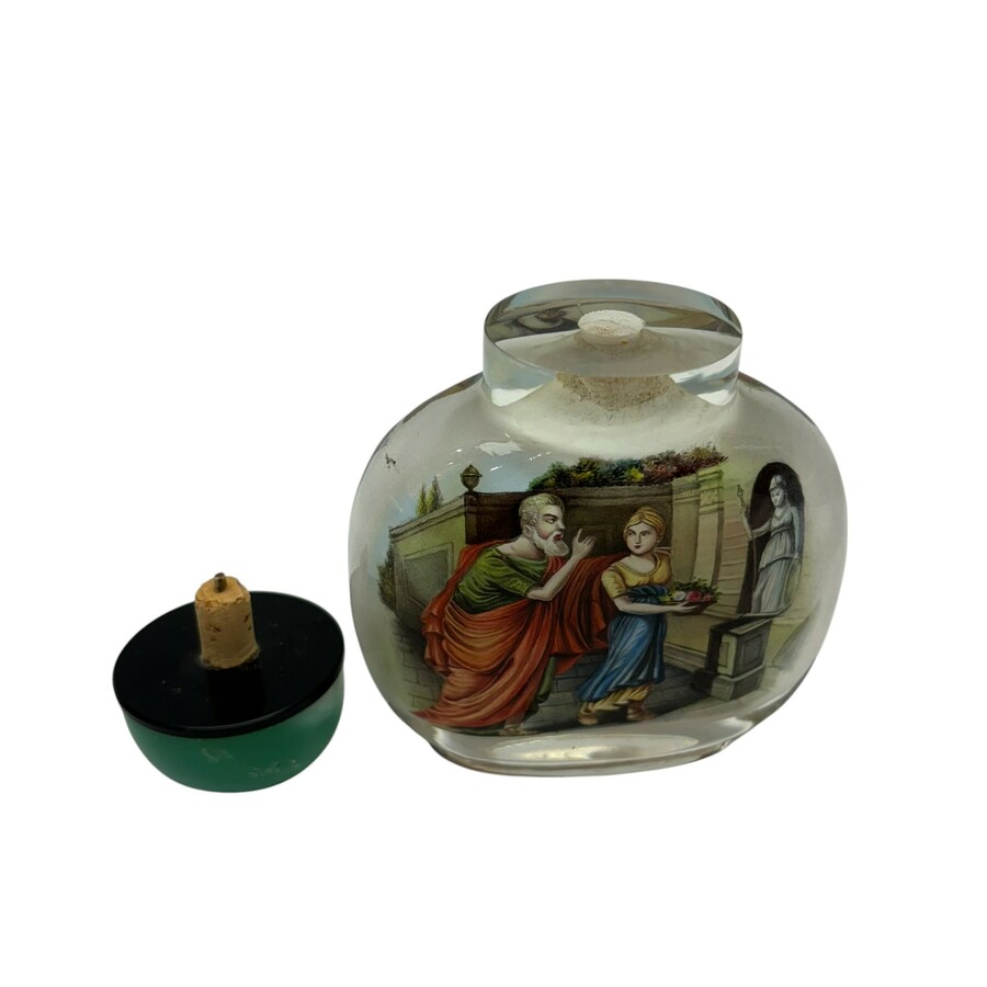 Een 20e eeuwse Chinese snuffbottle, aan de binnenzijde beschilderd met Europese voorstellingen.