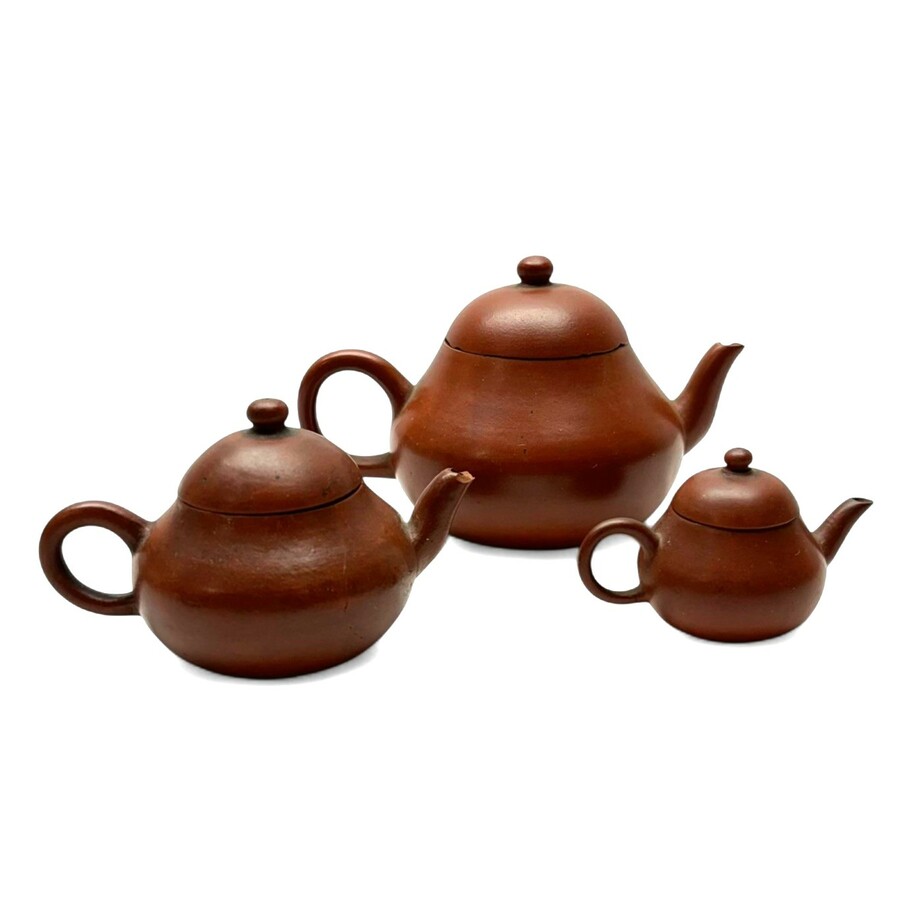 Lot van drie 19e of 20e eeuwse Chinees Yixing porseleinen trekpotjes, peervormig modellen. Allen aan de onderzijde gemerkt.